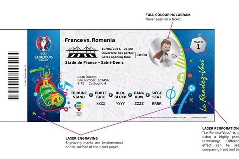 Holograma este chiar Super Victor, mascota acestui turneu. Pe bilet vor fi tipărite informații despre meci, stadion, ora deschiderii porților, prețul și locul.