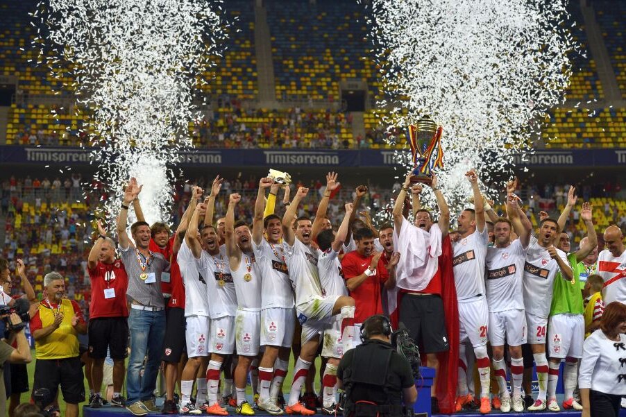 Italianul este antrenorul care a luat cele mai recente două trofee cu gruparea roș-albă, Cupa și Supercupa României, în a doua învingând chiar CFR, campioană la acel moment, 6-4 d.p.