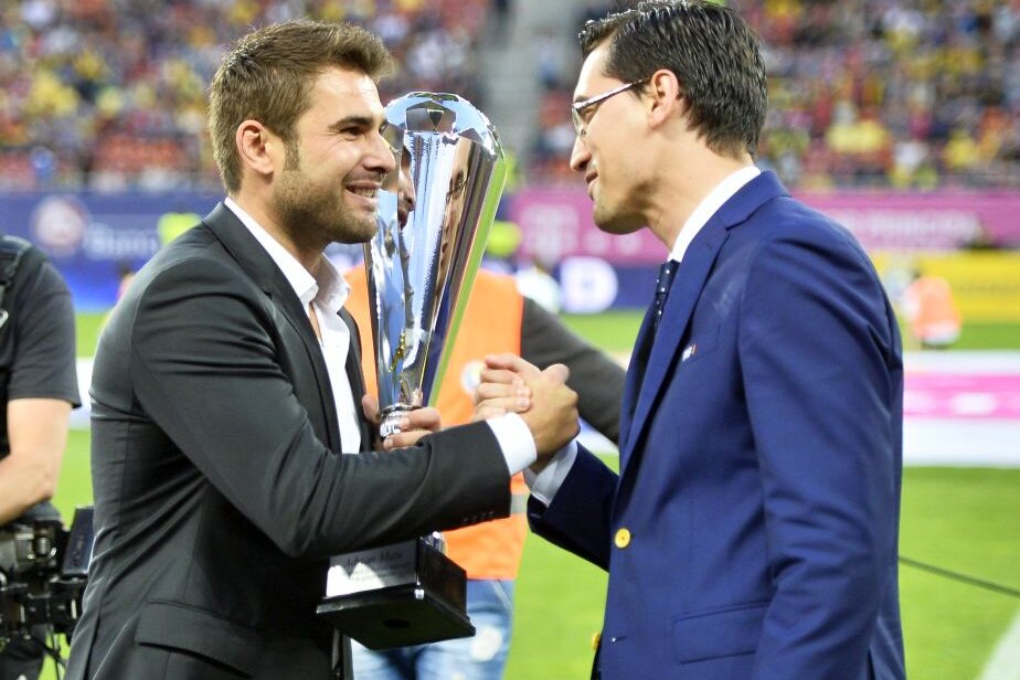 Răzvan Burleanu, președintele FRF, l-a premiat pe Adrian Mutu pentru întreaga sa activitate înaintea meciului amical cu Georgia, scor 5-1.