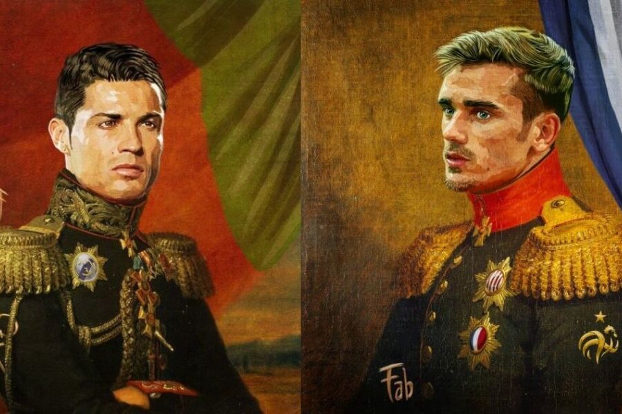 Cristiano Ronaldo și Antoine Griezmann sunt doar doi dintre jucătorii care au participat la Campionatul European din Franța și au fost aleși de către artistul italian Pupazzaro pentru a fi desenați costumați în generali.
