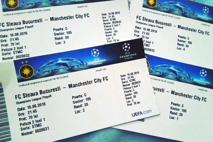 Deși rezultatul din tur nu mai dă nicio șansă Stelei să revină, reprezentanții vicecampioanei României au pus în vânzare la casele de la Arena Națională bilete pentru returul cu Manchester City. Un tichet costă 22 de lire sterlina, iar plata acestora se poate face doar în monedă britanică.