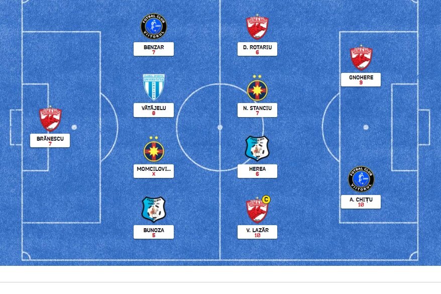 Echipa ideală: Bălgrădean - Hanca, Săpunaru, St. Filip, Kay - Mrzljak, V. Lazăr, Hamroun, Purece - A. Chițu, Fl. Coman
