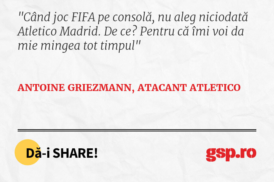 Când joc FIFA pe consolă, nu aleg niciodată Atletico Madrid. De ce? Pentru că îmi voi da mie mingea tot timpul