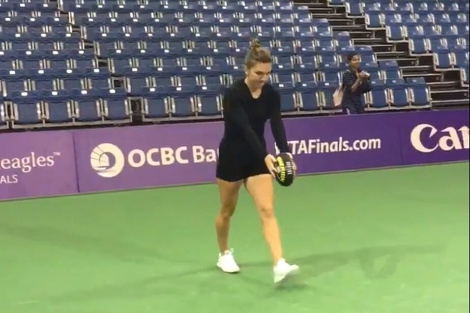 Simona Halep s-a pregătit azi alături de Darren Cahill și a arătat că se simte foarte bine la Singapore. Antrenorul a postat un video pe Twitter în care Simona lovește foarte bine o minge de fotbal australian.