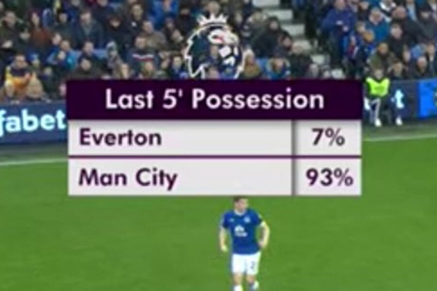 Pep a pierdut contra celor de la Everton, cu 0-4, însă o statistică a fost favorabilă trupei din Manchester. Într-o porțiune de 5 minute, City a avut o posesie de 93%!