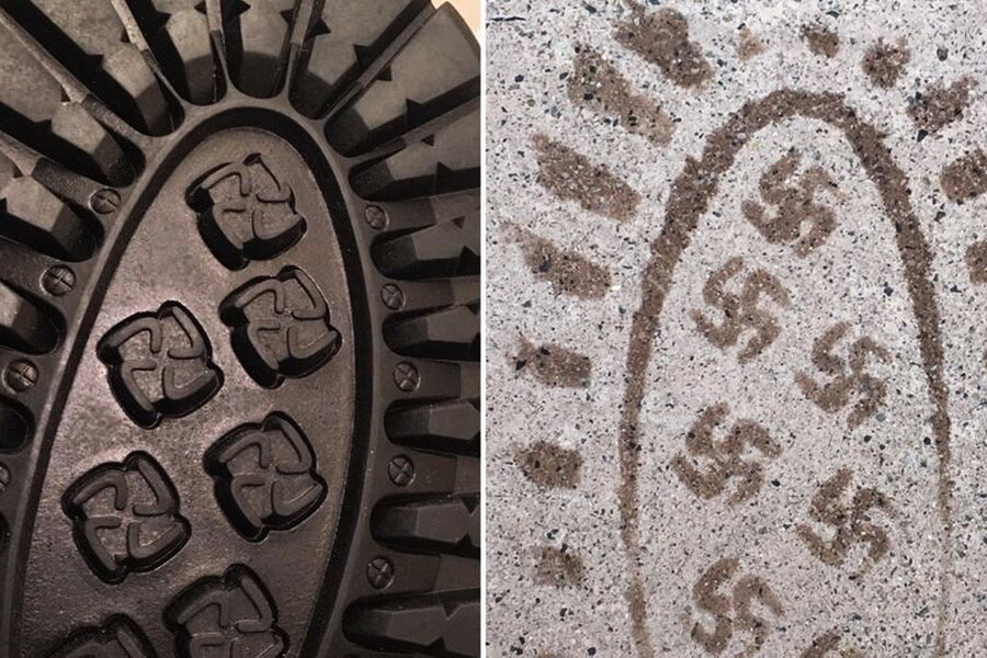 Urmele pe care le lasă această încălţăminte sunt exact în forma svasticii lui Adolf Hitler.