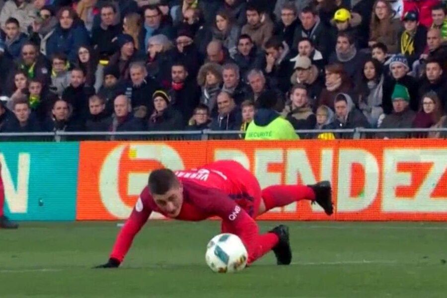 La scorul e 1-0 pentru PSG, în minutul 29, Verratti se afla cu mingea la picior la marginea propriului careului, fără a fi presat de vreun adversar, s-a lăsat în genunchi și i-a pasat cu capul lui Trapp de la firul ierbii.