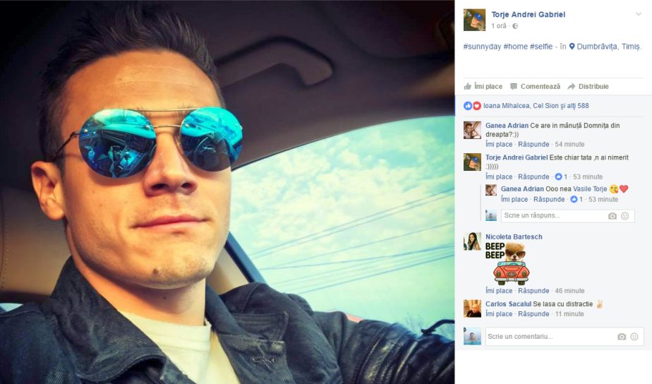 Gabi Torje a oferit un episod amuzant. Fotbalistul a postat o imagine pe contul de Facebook, iar în ochelarii săi se reflecta imaginea unei alte persoane aflate pe scaunul din dreapta.