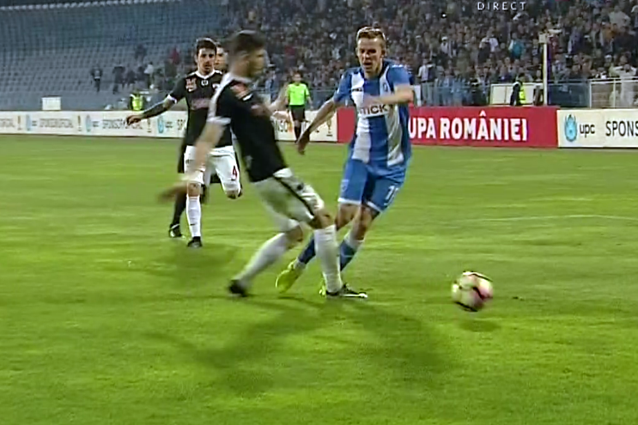 În minutul 74 al partidei din sferturile de finală ale Cupei României dintre CSU Craiova și Dinamo oltenii au cerut o lovitură de pedeapsă.