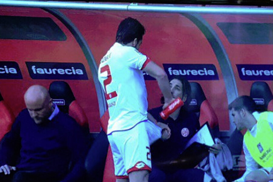 La pauză, fundașul dreapta italian Giulio Donati, 27 de ani, a fost trimis în teren în locul lui Balogun de către antrenorul Schmidt, iar apărătorul s-a manifestat ciudat la intrarea pe gazon.