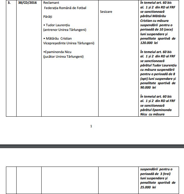 Mătărău a primit o suspendare de 10 luni și o amendă de 120.000 de lei, iar Epaminonda Nicu s-a ales cu trei luni de suspendare și o penalitate de 25.000 de lei. Laurențiu Tudor a fost suspendat 8 luni și va avea de achitat o amendă îm valoare de 90.000 de lei.