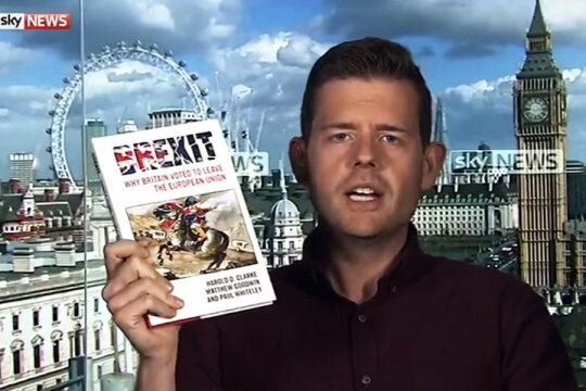 Matthew Goodwin, un profesor de ştiinţe politice de la Universitatea Kent, a apărut la Sky News şi a început să mănânce dintr-o carte scrisă de el, despre Brexit.