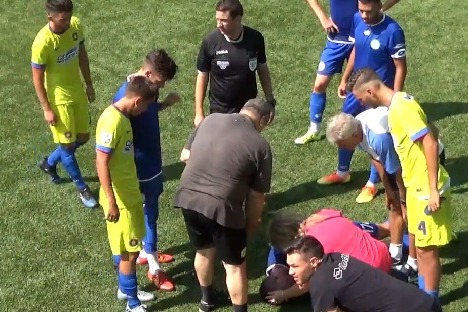 În prima repriză, mijlocașul Chiajnei, Codruț Anghel, s-a ciocnit cu un adversar și a rămas întins pe gazon. Adversarul a vrut să-l ridice de pe gazon, dar jucătorul Chiajnei nu dădea semne de revenire. În momentul în care arbitrul s-a apropiat, a făcut imediat semn medicilor să intre pe teren.