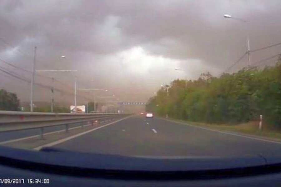Un șofer a filmat momentul tragicului accident. Acesta a avut inspirația să oprească mașina pe dreapta, când a văzut că furtuna se întețește, cu doar câteva zeci de metri înainte de poartă.