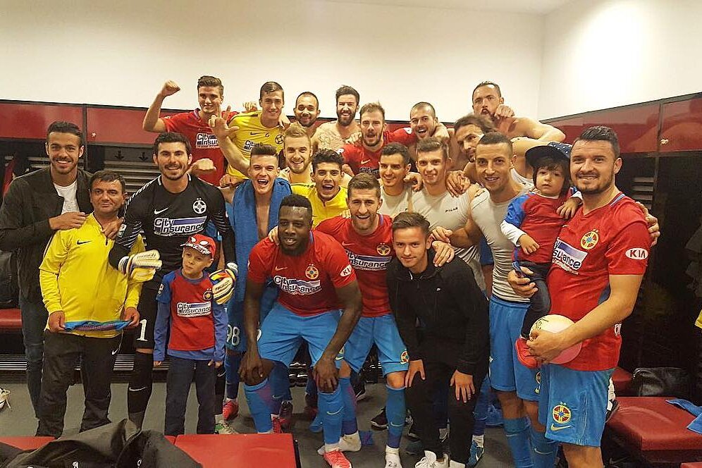 După finalul partidei, steliștii au sărbătorit victoria chiar pe teren, unii dintre ei alături de familie.