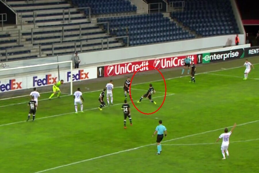 În minutul 38, la o centrare în careul lui Lugano, Ledesma a încercat să respingă balonul, însă mingea l-a lovit în mână. Jucătorii de la FCSB au așteptat reacția centralului Serhiy Boiko, însă acesta a lăsat jocul să continue.