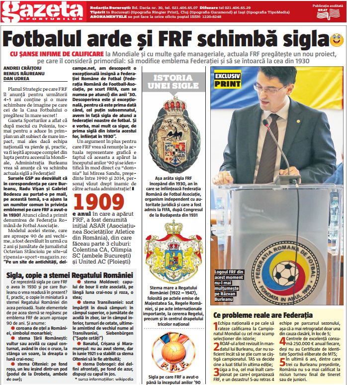 GSP a anunțat intenția FRF încă de pe 9 iunie. A publicat atunci imagini cu noua siglă și mai multe date.