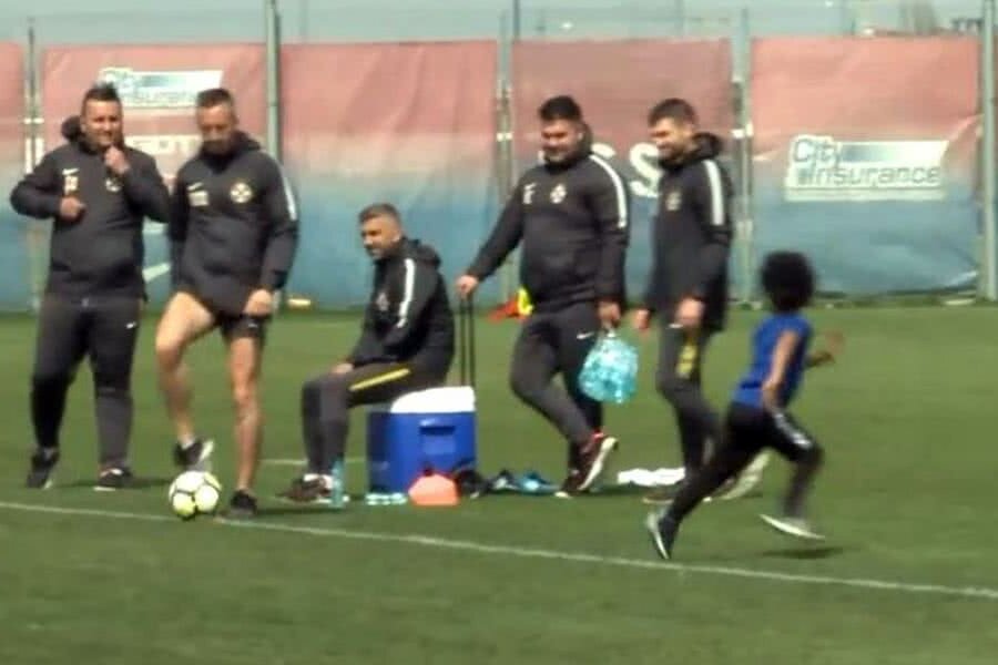 Unul dintre copiii lui Gnohere a participat la ședința de pregătire de azi și a schimbat mai multe pase cu MM Stoica, directorul sportiv al echipei.