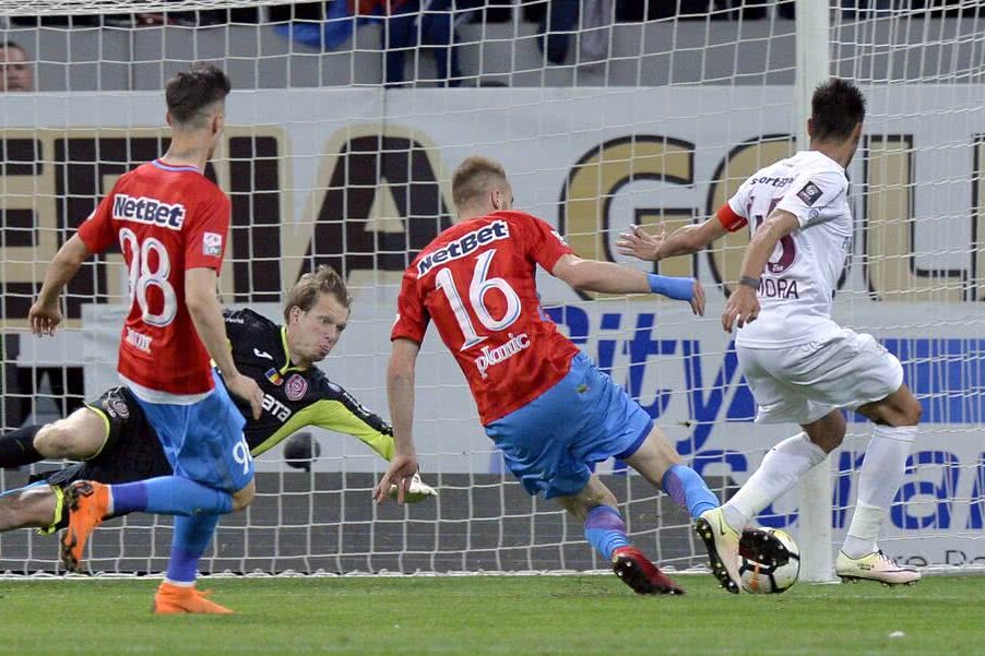 Dar după ce s-a dat primul gol, cei de la FCSB au încercat să egaleze cu mingi la bătaie și n-aveau nicio șansă. A apărut doar acea fază când i-au prins pe clujeni pe contraatac.