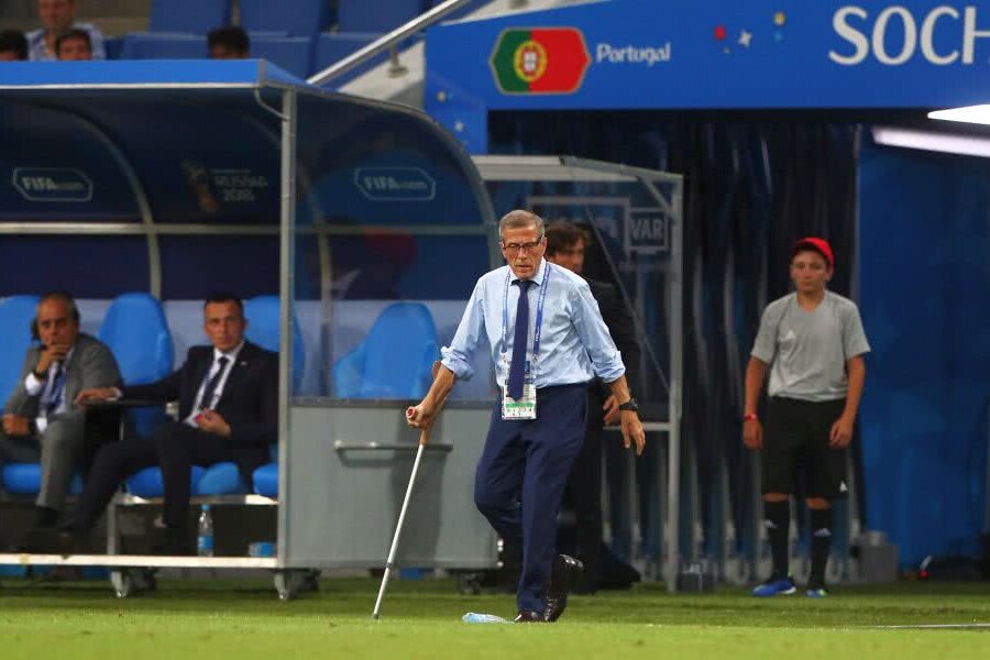 Oscar Washington Tabarez, 71 de ani, a trăit la intensitate maximă pe banca Uruguayului meciul cu Portugalia din optimile Mondialului, scor final 2-1.