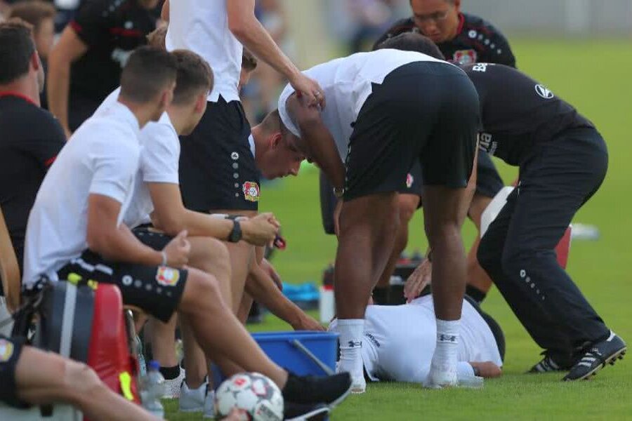 "Colapsul a survenit din cauza oboselii", explică, pe Twitter, clubul din Leverkusen. Directorul sportiv Rudi Voller anunță că jucătorul e bine și a rămas internat peste noapte pentru examene amănunțite.