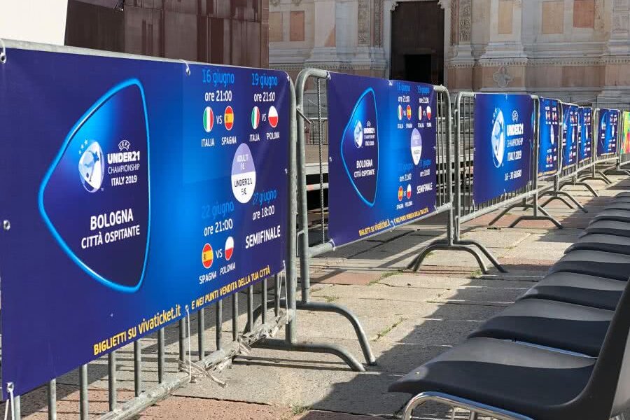 ROMÂNIA LA EURO 2020 // În centrul orașului Bologna, organizatorii Campionatului European U21 au instalat un ecran uriaș, unde fanii pot urmări meciurile internaționalilor de tineret.