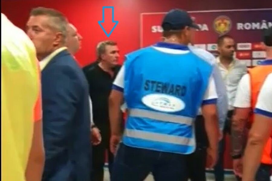 Potrivit TV Telekom Sport, acesta s-a intersectat pe tunelul de la vestiare cu oameni din staff-ul CFR-ului, cărora le-a adresat cuvinte grele: „Bă, ce faceţi voi aici? Puneţi presiune pe arbitri? Să vă fie ruşine! Plecaţi imediat de aici! Grija voastră doar arbitrajul e!”