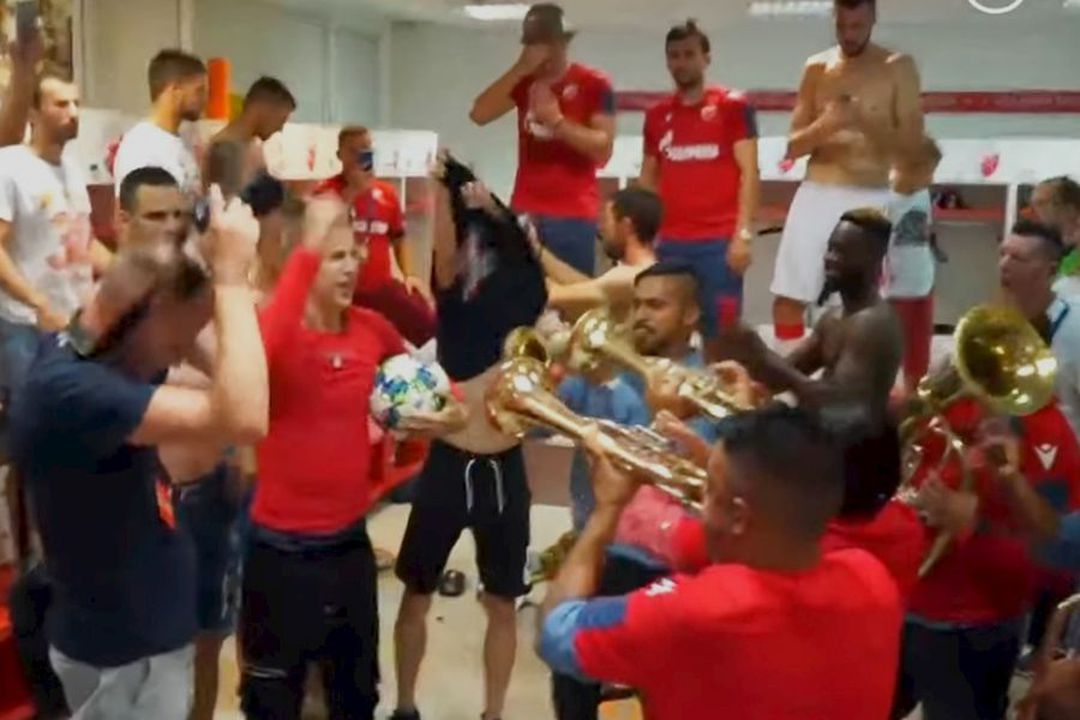 A fost sărbătoare după meci în vestiarul sârbilor, care au petrecut pe cinste alături de o fanfară care a colorat atmosfera. Era chiar trupa cunoscutului compozitor Goran Bregovic, unul dintre cei mai în vogă muzicieni din Balcani.