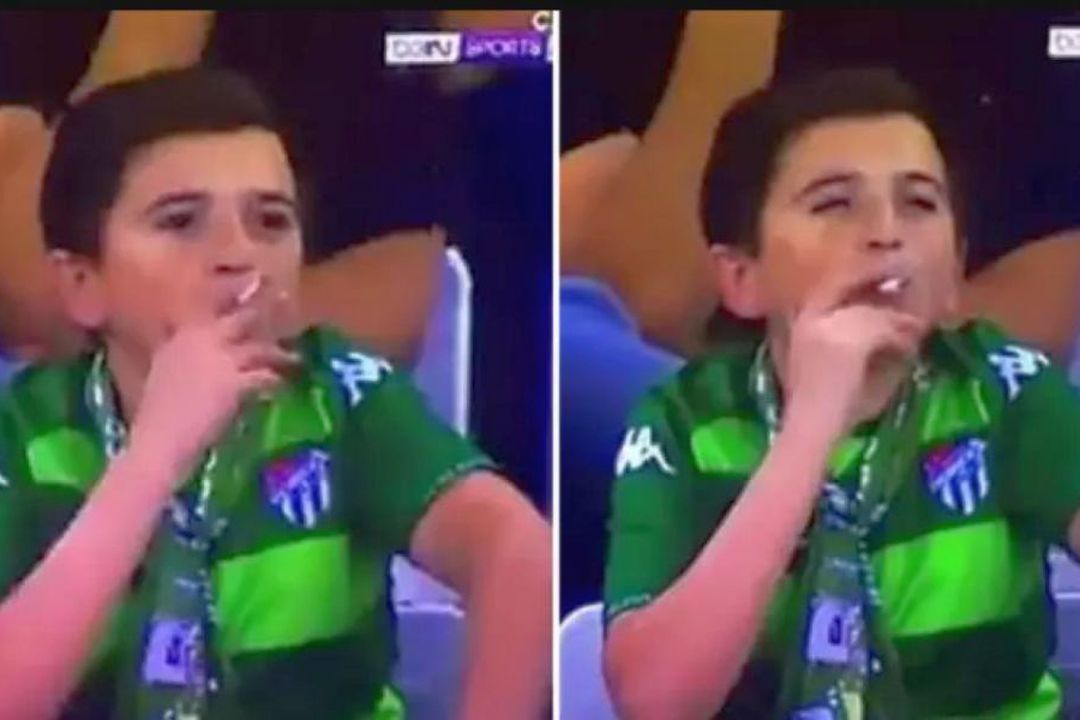 Suporterul părea că e un copil sub 14 ani și lumea a rămas șocată de imaginile în care apărea cu țigara în gură. Se pare însă că nu este vorba de un copil ci de un adult de 36 de ani! Iar copilul de lângă el este chiar fiul acestuia.