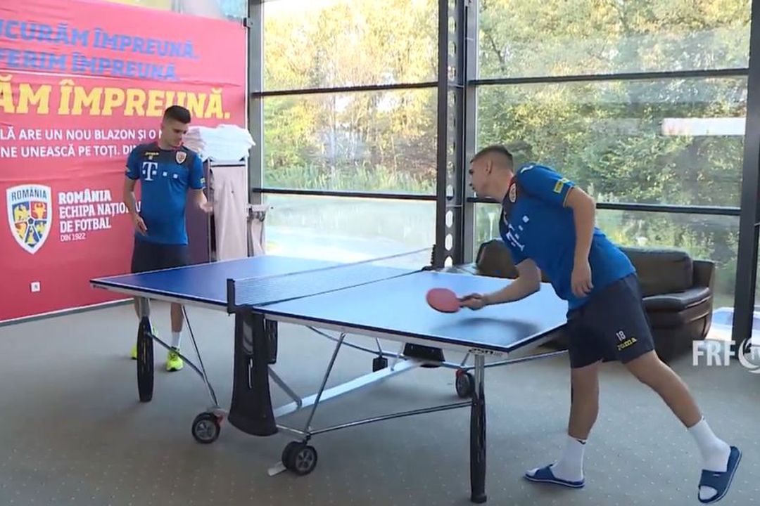 Cei doi s-au duelat într-un meci de ping pong, iar învingător a ieșit mijlocașul lui Ajax, care s-a impus cu scorul de 11-9. Potrivit FRF.ro, Ianis Hagi i-a promis lui Răzvan Marin că își va lua revanșa.