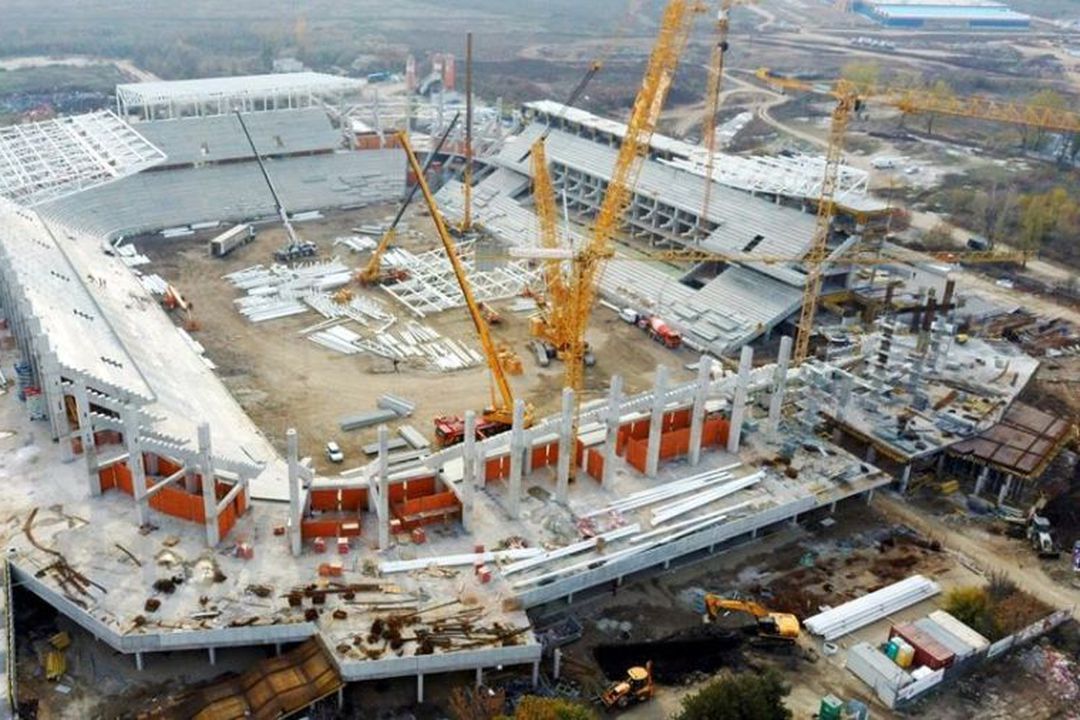 - se execută lucrări la partea de suprastructură a stadionului, lucrări din beton monolit şi prefabricate (stadiul acestora este de cca. 85%);