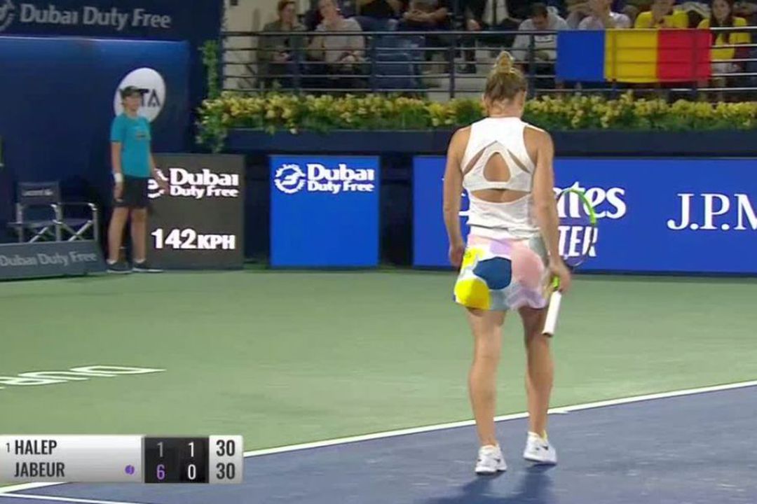 Deși a avut mingi de break în game-ul trei al primului set, Simona a cedat treptat inițiativa și i-a permis adversarei sale să dicteze ritmul punctelor. Ons Jabeur, sfertfinalistă la Australian Open, a arătat încă o dată forma bună în care se află, și a dominat-o la toate capitolele pe Halep.