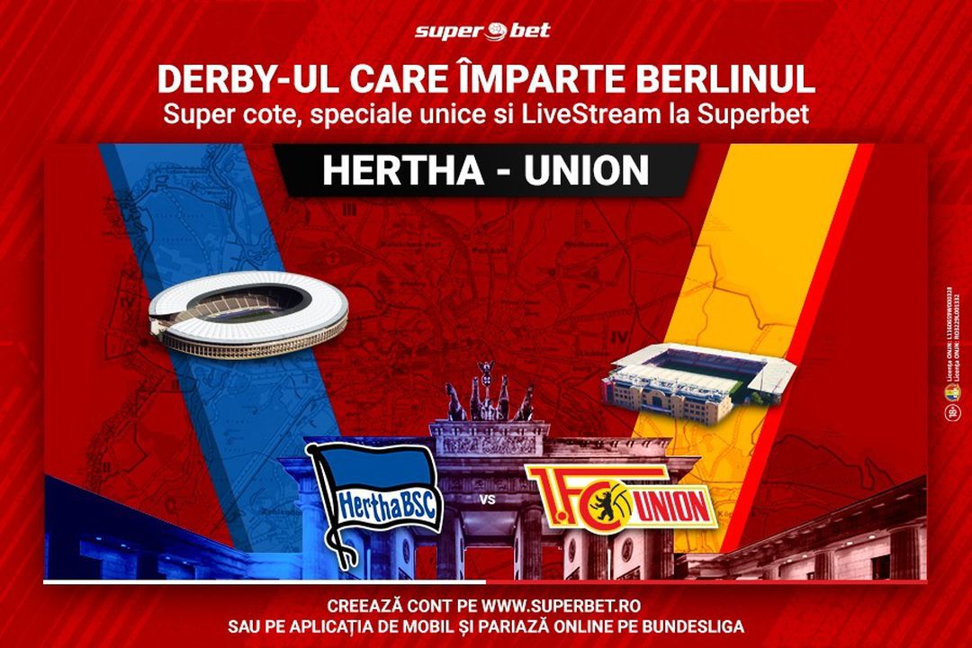 Vineri, de la ora 21:30, Berlinul se desparte în două. Este ziua marelui derby al capitalei Germaniei, Hertha - Union. Vecine de clasament și despărțite de doar un singur punct, cele două rivale se întâlnesc doar pentru a doua oară în istorie în Bundesliga. Meciul va fi LiveStream pe site-ul și în aplicația Superbet.