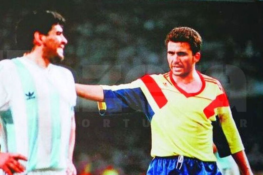 Gică Hagi și Diego Maradona s-au înfruntat la națională în 1982, într-un amical, 1-0 pentru sud-americani, și la CM 1990, în grupe, când România și Argentina au remizat, scor 1-1. Monzon a deschis atunci scorul în minutul 62, Balint reușind să egaleze în minutul 68. Diego era pe culmile gloriei: titlul mondial în 1986, două campionate, o Cupă, o Supercupă a Italiei și Cupa UEFA cu Napoli. Gică tocmai semnase un contract fabulos pentru acele vremuri cu Real Madrid, avea în spate o finală și o semifinală de Champions League și o cotă de top pe Bătrânul Continent.