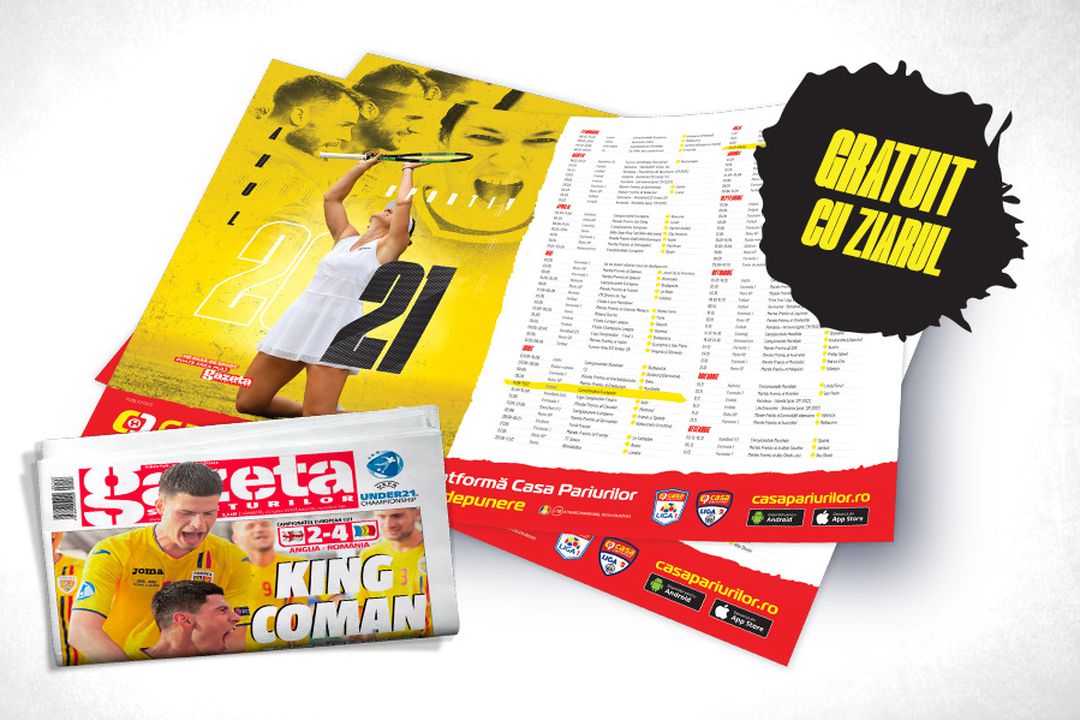 Gazeta Sporturilor a pregătit pentru cititorii săi un calendar al celor mai importante evenimente sportive, prevăzute să se desfășoare în 2021. Calendarul este prezentat sub forma unui afiș care va fi oferit gratuit tuturor celor care cumpără vineri ziarul Gazeta Sporturilor.