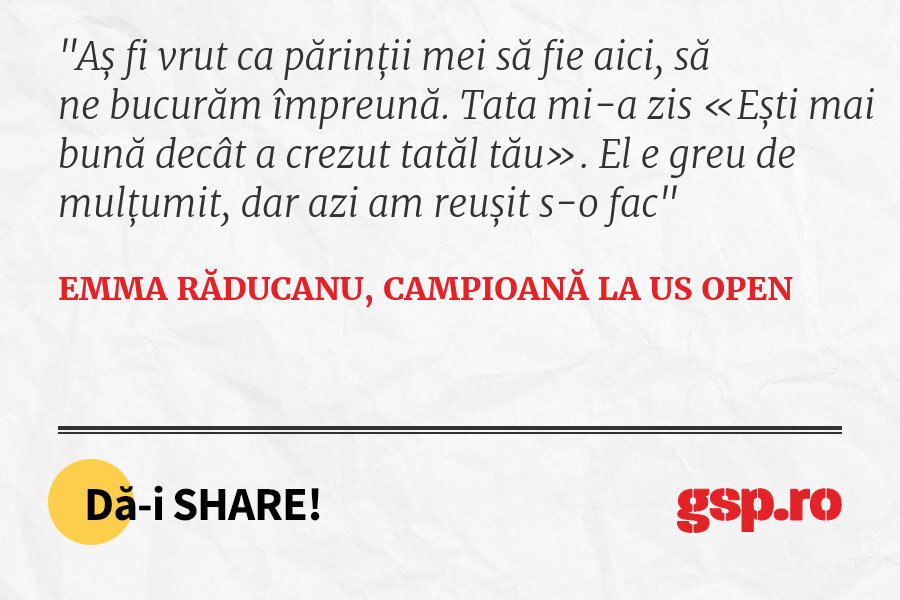 Aș fi vrut ca părinții mei să fie aici, să ne bucurăm împreună. Tata mi-a zis «Ești mai bună decât a crezut tatăl tău». El e greu de mulțumit, dar azi am reușit s-o fac