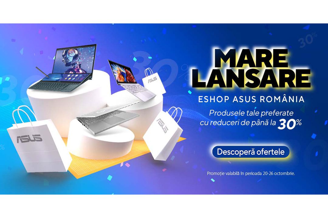 Lansarea noii versiuni a magazinului local ASUS România vine cu o serie de promoții la telefoane mobile și notebook-uri, la care se adaugă cupoane valorice de 100 de lei de care beneficiază toți cei care își creează un cont pe site-ul oficial ASUS.
