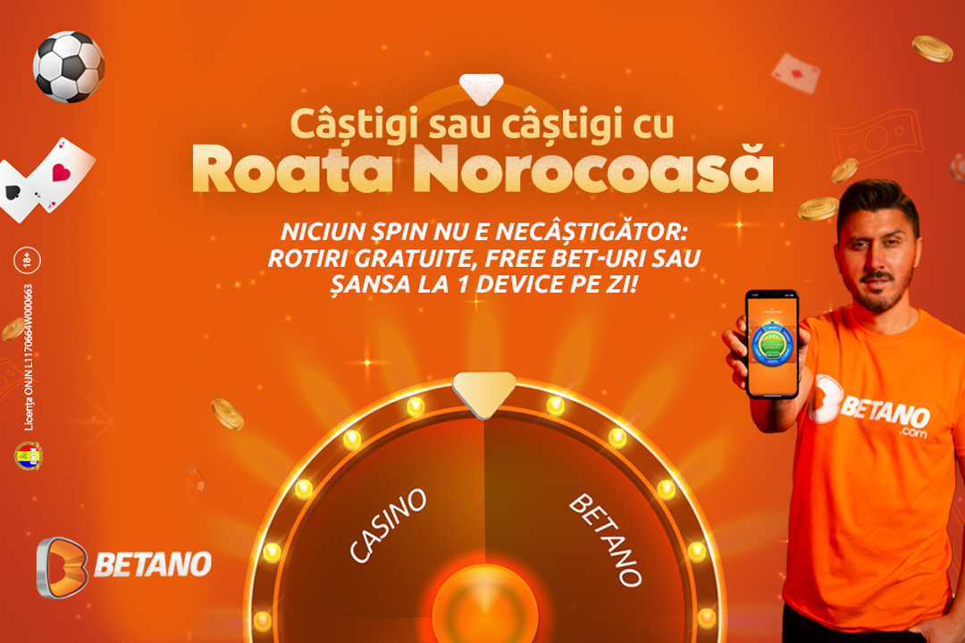 Roata Norocoasă continuă să fie în topul preferințelor utilizatorilor Betano gata să te mențină plin de energie și gata de acțiune cu premii zilnice la Sport, Cazinou, Virtuale, și în această lună, cu câte un telefon Samsung Galaxy A52s pe zi! Roata Norocoasă îți oferă acum zilnic doza de adrenalină a unui spin întotdeauna câștigător. Bonusurile sunt fără condiții de rulaj și îți garantează o bucurie triplă: cea a primirii unui Bonus atunci când prinzi rotirea norocoasă, după care faptul că poți profita la maximum de experiența Betano, dar și emoțiile pentru tragerile la sorți ce vor avea loc săptămânal.