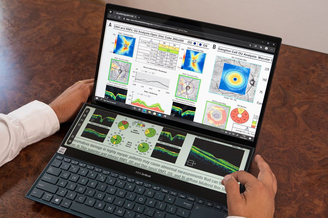 Dr. Șuță, el însuși utilizator de așa ceva, recomandă un ecran de tip OLED de ultimă generație, care protejează ochii utilizatorului, având un filtru pentru lumina albastră, și fiind, din toate punctele de vedere, benefic. „În prezent folosesc un laptop ASUS ZenBook Pro Duo OLED, care pentru mine a fost o alegere simplă, deoarece nu prezintă doar un singur ecran, ci două”. Primul ecran, un OLED tactil cu rezoluție 4K, este folosit de medic pentru rularea aplicațiilor, având un contrast excelent și culori naturale.