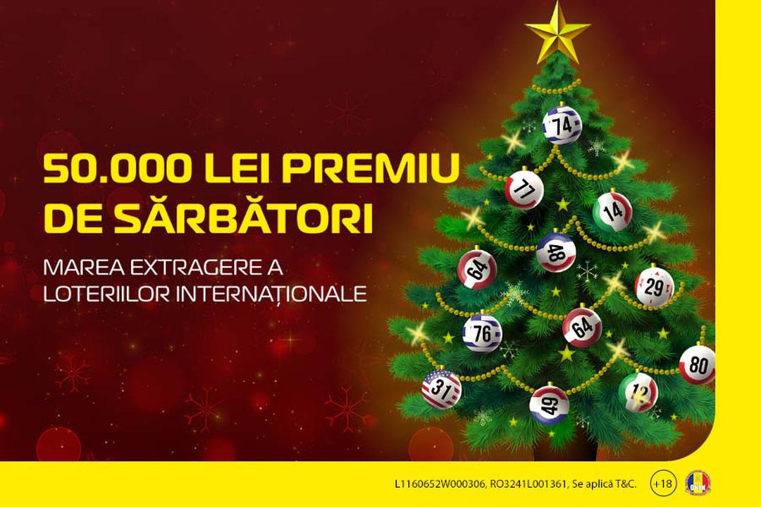 Totul se trage la sorți, live și regulamentar, cu bilele pe masă. Și fix cum ziceam, pe 24 decembrie. Tot ce trebuie să faci ca să fii aproape de momentul bucuriei din ajun e să pui cel puțin 5 lei pe un bilet la orice loterie internațională din cele aproape 100 pe care le avem la Casa. Și gata, ești calificat direct în urna cu extragerile din 24.