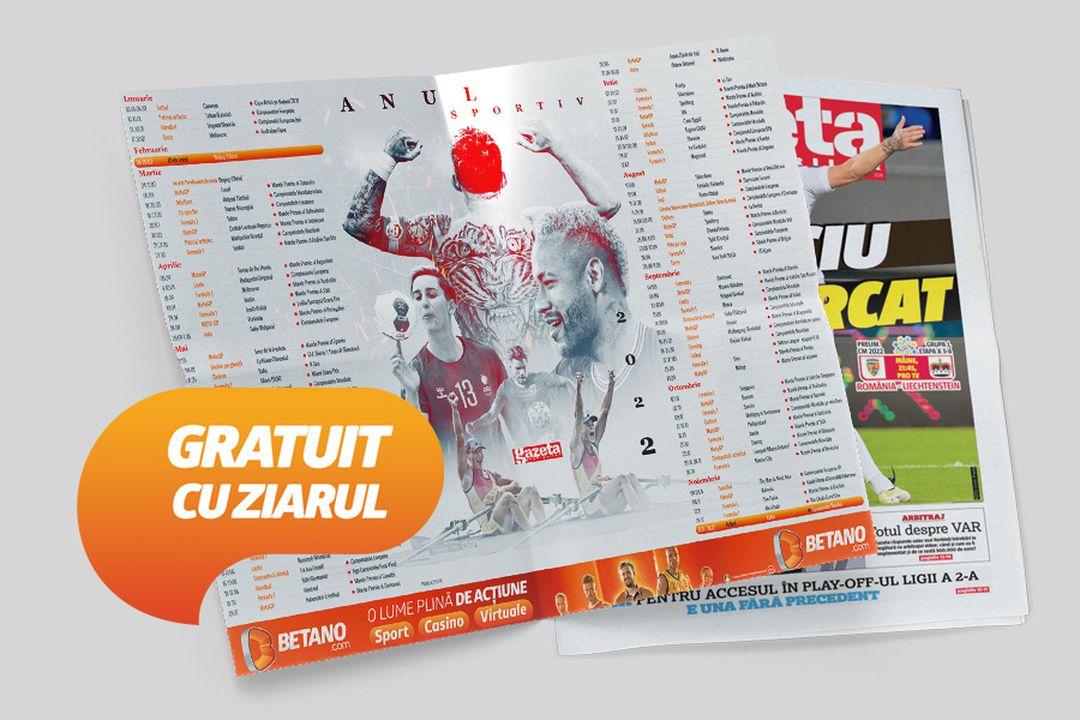 Nu rata afișul gratuit cu ziarul și pregătește-te din timp să urmărești competițiile sportive ale anului 2022! De la Jocurile Olimpice și paralimpice de iarnă din Beijing din februarie, până la Campionatele Mondiale de Natație de la Fukuoka și finala Europa League din Sevilla din mai, Wimbledon la final de iunie și evenimentul anului, Campionatul Mondial de fotbal din Qatar din noiembrie.