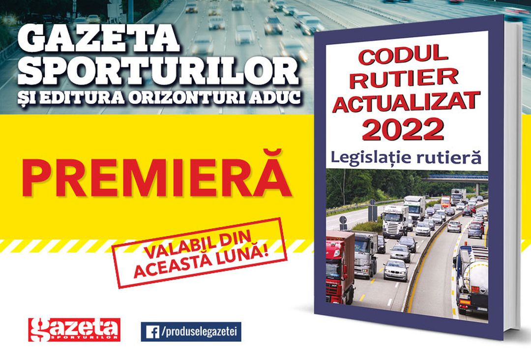 Gazeta Sporturilor și Editura Orizonturi aduc la chioșcurile de ziare o carte extrem de importantă pentru conducătorii auto, dar și pentru cei care se pregătesc să își ia carnetul de conducere. Noul Cod Rutier cuprinde cele mai recente modificări ale legislației, detalii despre noile reguli și sancțiuni prevăzute.