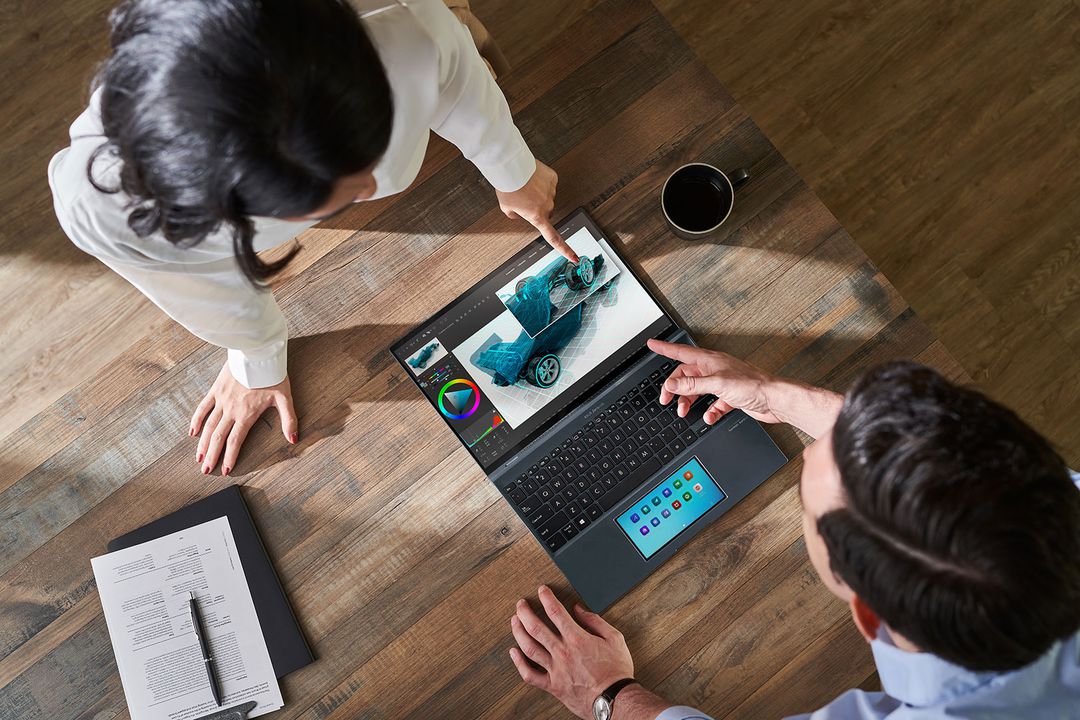 Ecranul principal este însoțit de un al doilea afișaj integrat în mod inteligent în touchpad. Ecranul secundar ScreenPad poate fi controlat în mod intuitiv prin intermediul aplicației ScreenXpert, oferind ca beneficii un multitasking mai eficient și îmbunătățind experiența normală de utilizare a unui laptop.