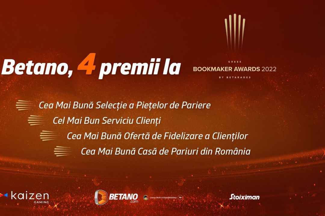 BETANO.com, operator european de top al industriei de pariuri sportive & cazinou online, parte a Kaizen Gaming, a fost distins în cadrul ceremoniei Greek Bookmaker Awards 2022 cu patru premii pentru piața din România.