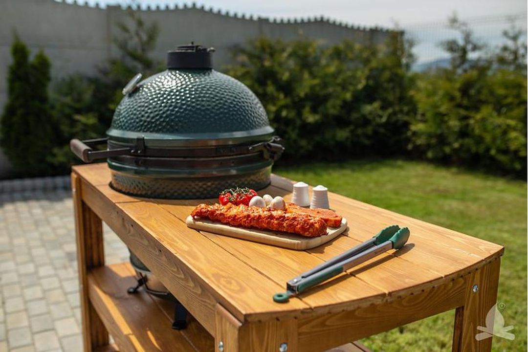 Așadar, este vorba despre unicul Big Green Egg - un grătar de grădină confecționat din ceramică de tip kamado. Acest tip de grătar premium oferă cărnii, peștelui, puiului și altor preparate, o aromă unică, delicat de crocantă la exterior și suculent-delicioasă pe interior. Adaugă câteva accesorii specializate și vei deveni un veritabil masterchef al grill-ului cât ai spune, pește… sau pui, vită sau orice îți poftește inima!