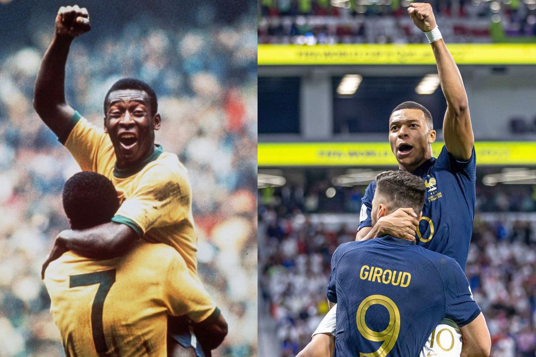 Pe 4 decembrie 2022, după 52 de ani, imaginea cu Pelé și Jairzinho se repeta în oglindă tot la un turneu final. Kylian Mbappé, ținut în brațe de Olivier Giroud, la 3-1 pentru Franța, în „optimi”, cu Polonia. Cei doi albaștri sunt în ascensiune spre al doilea titlu mondial, cum a reușit și Pelé, în 1958 și 1962.