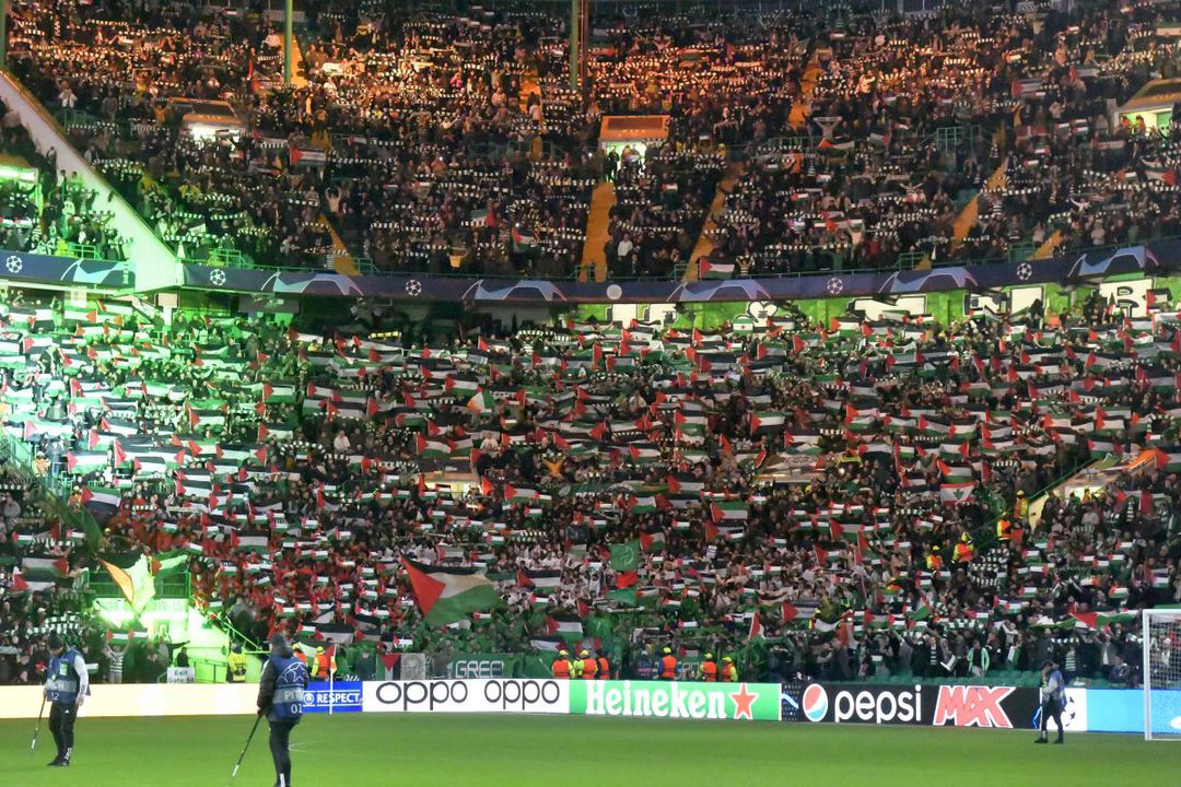 Tribunele „Celtic Park” au fost înțesate de steaguri palestiniene. Suporterii alb-verzilor le fluturau în timp ce cântau „You'll never walk alone”, piesă intonată și de fanii lui Liverpool și cei ai Borussiei Dortmund înaintea meciurilor.