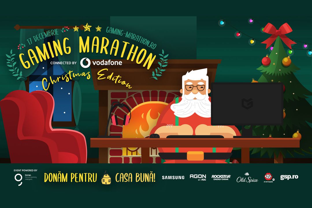 Gaming Marathon este connected by Vodafone și upgraded by George, susținut de Samsung, Rockstar Energy Drink, AGON BY AOC, Old Spice, Kiss FM și GSP.ro.