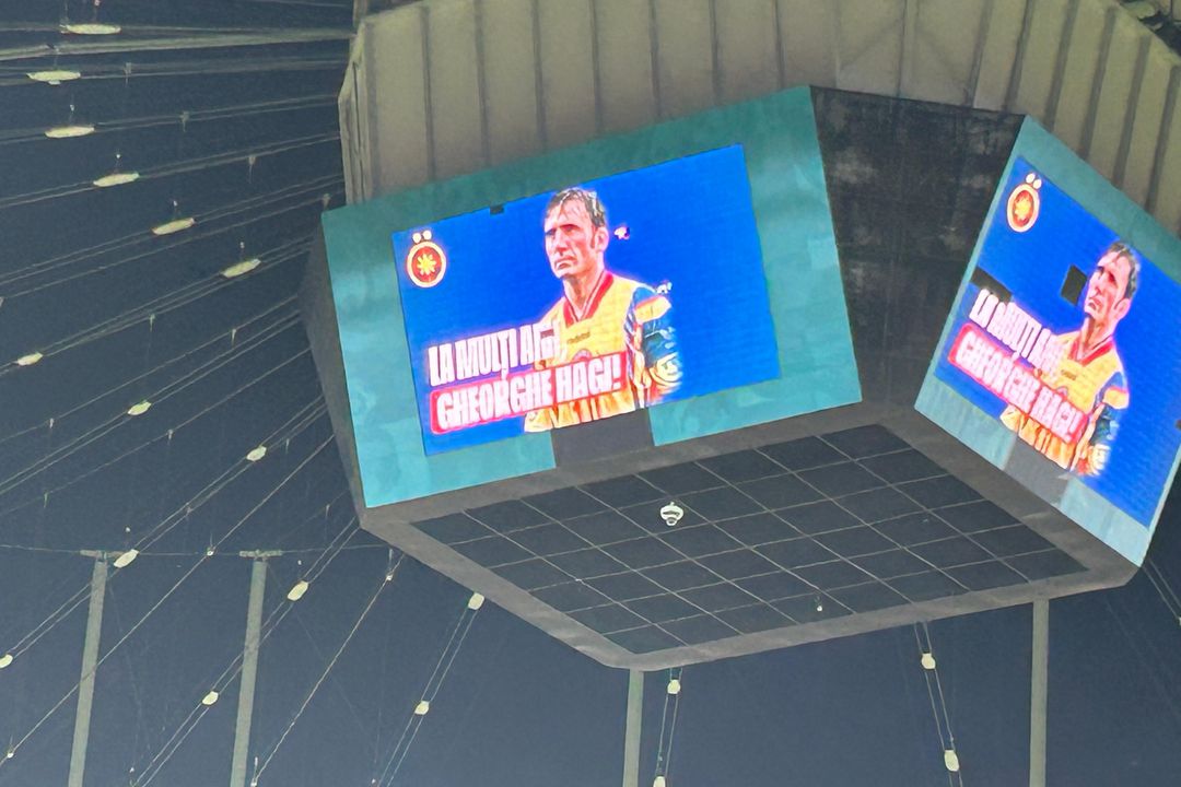 Ambele galerii i-au scandat numele, iar cei din Peluza Nord i-au cântat „La mulți ani!”. Hagi i-a salutat pe ultrașii roș-albaștrilor, apoi meciul a putut începe.