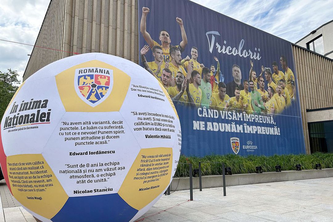 La intrarea în hotel au fost ancorate steaguri cu sigla echipei naționale, iar în fața unității de cazare afișate mesaje care să-i încurajeze pe „tricolori”.
